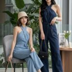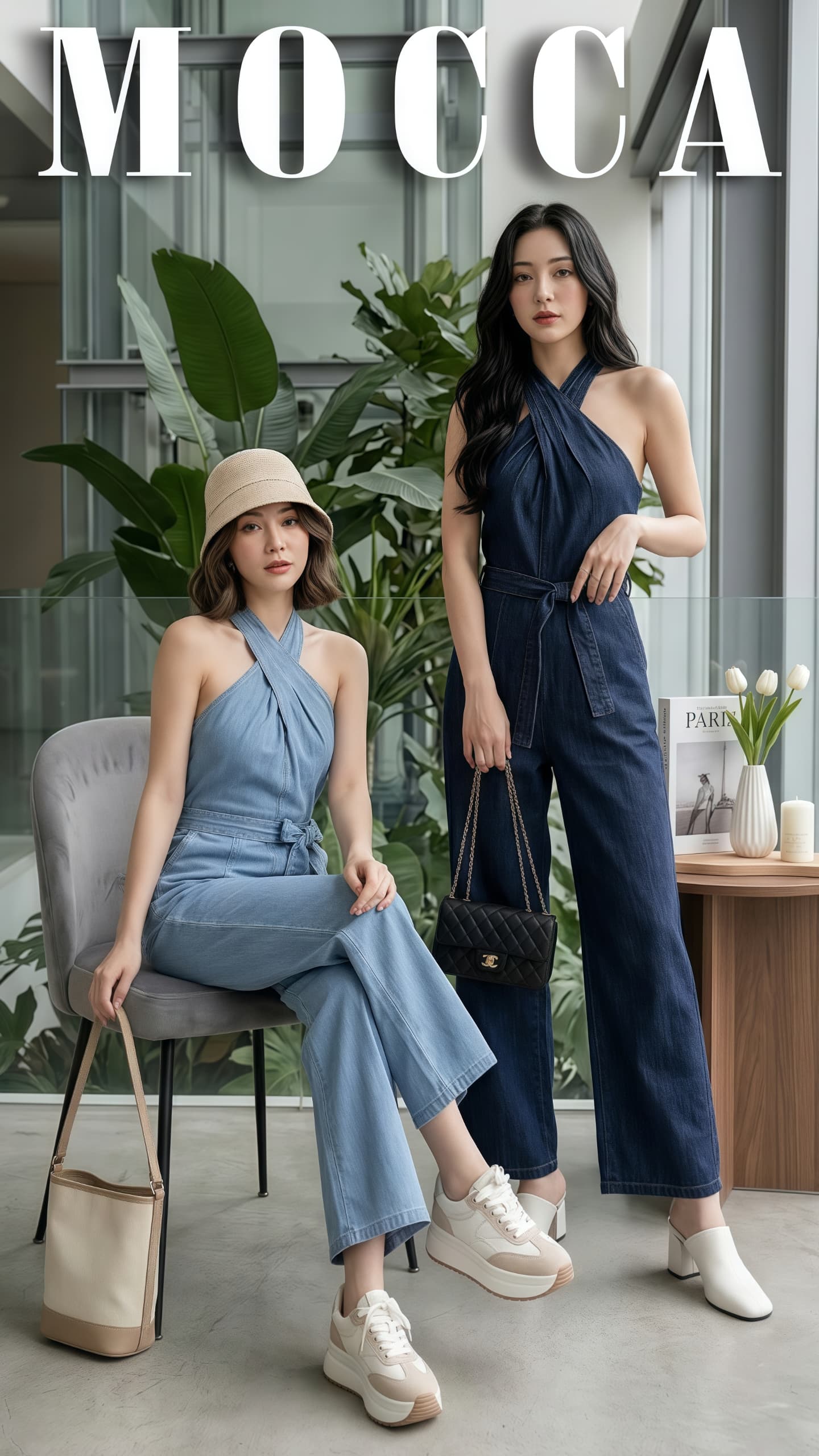 Mocca时尚显瘦牛仔连身直筒长裤