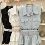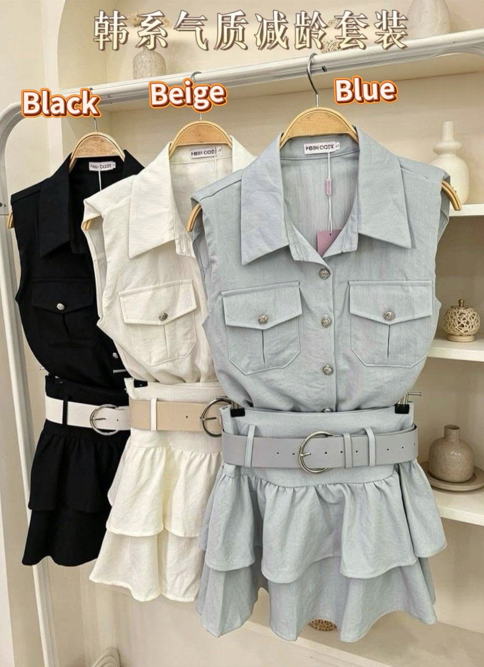 (高质量✔️没弹性✔️背面拉链设计✔️上衣纽扣可打开✔️附送皮质腰带✔️有内衬裤子✔️建议身高160cm以下✔️)