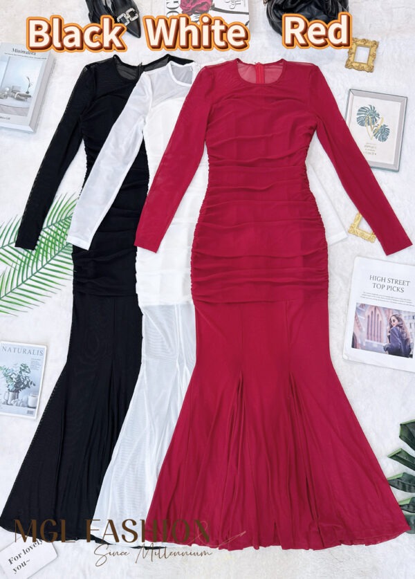 Whitney 气质唯美名媛风网纱皱褶晚装礼服长裙