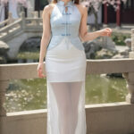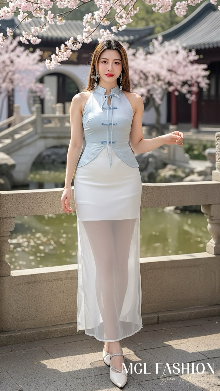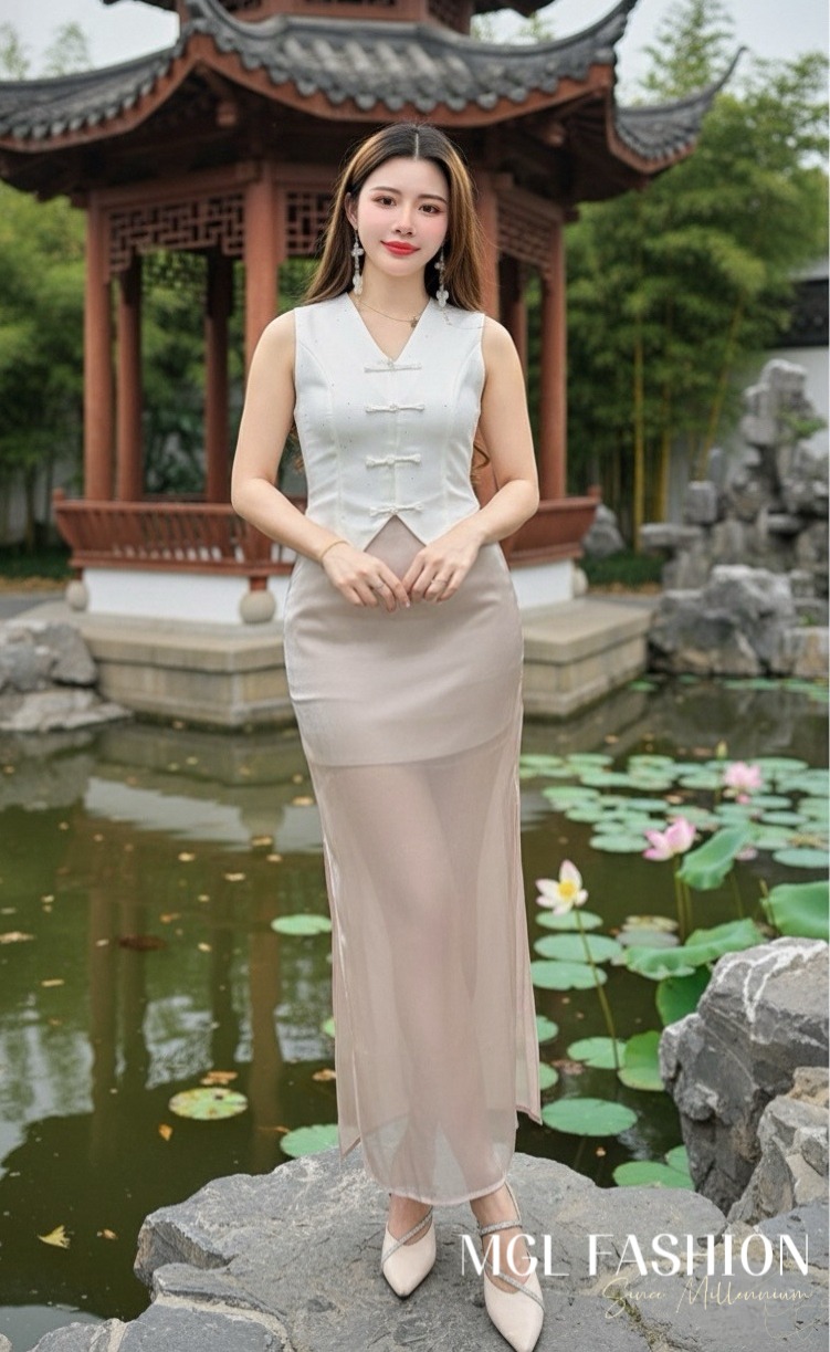 Cheri时尚百搭版型绝美流光纱高腰休闲时装长裙