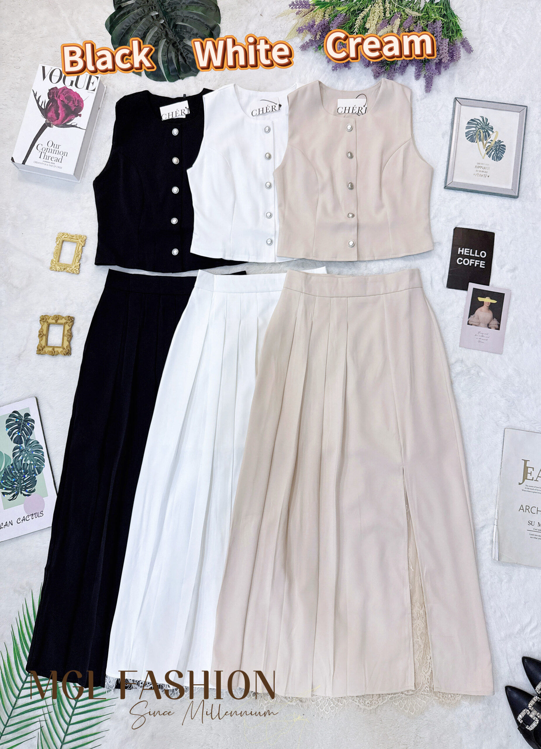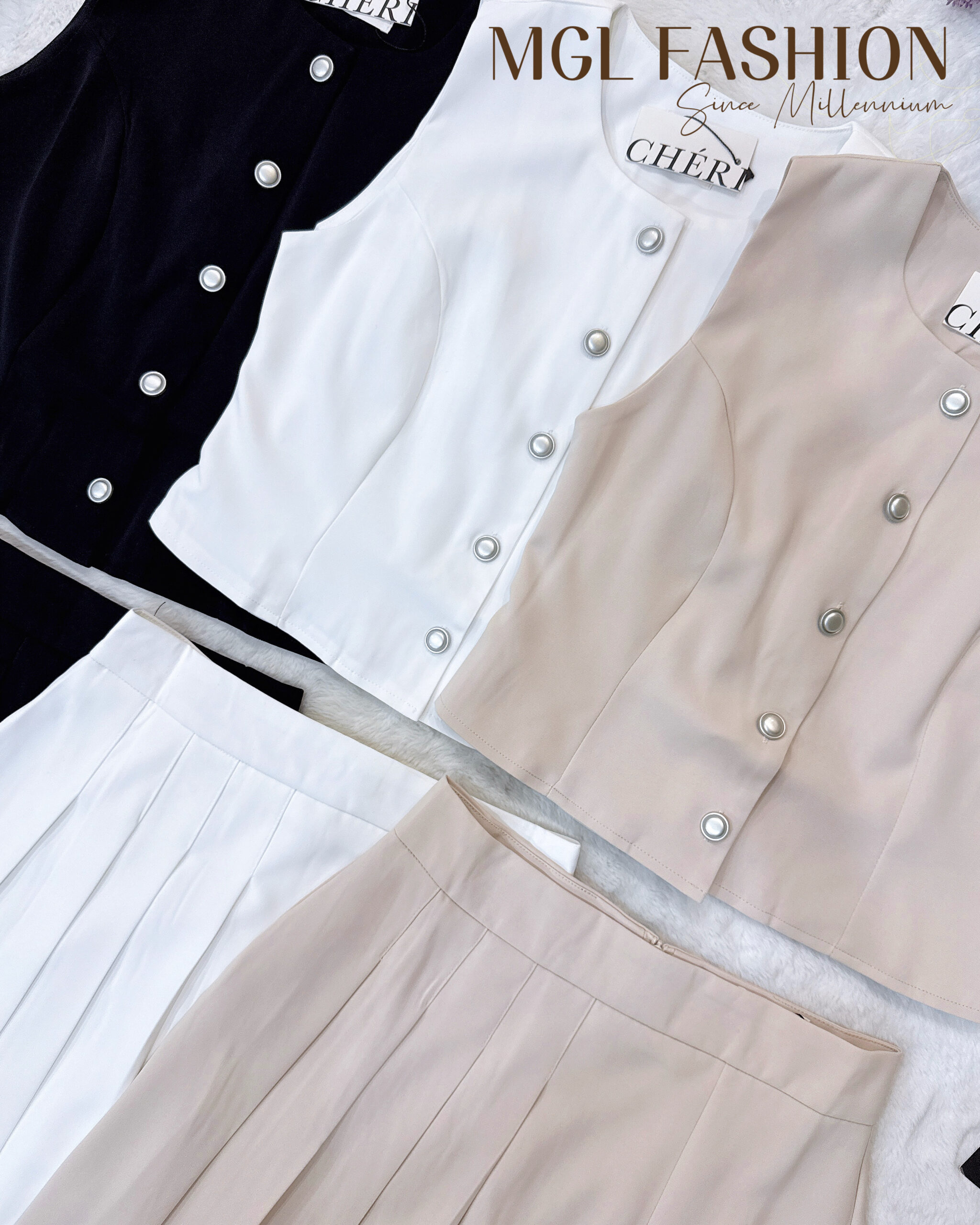 (高质量✔️没弹性西装面料✔️上衣前开式纽扣设计✔️裙子内衬蕾丝设计)