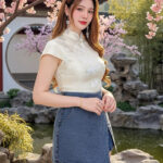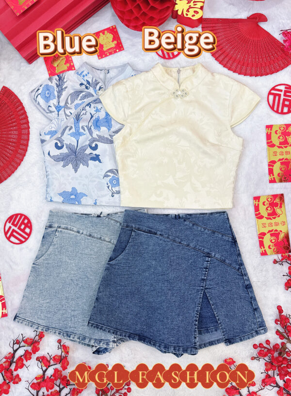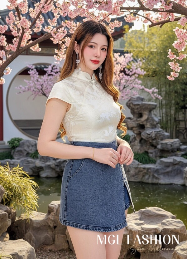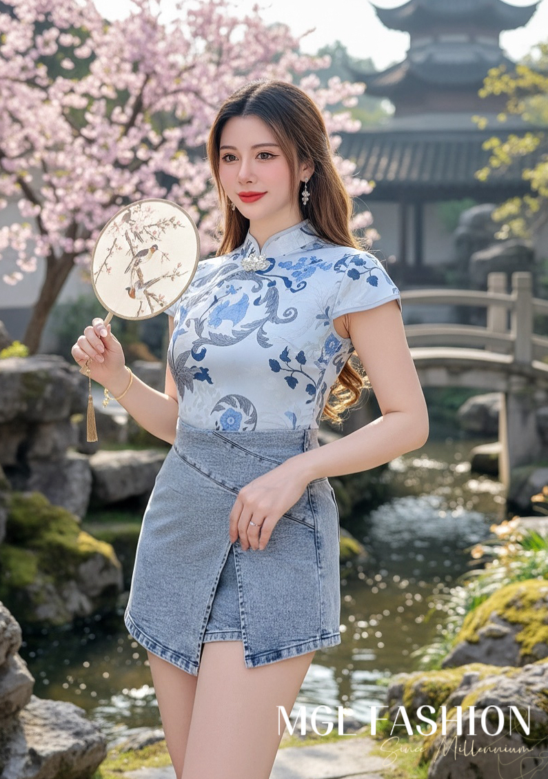 Cheri 新年新中式气质提花牛仔旗袍套装