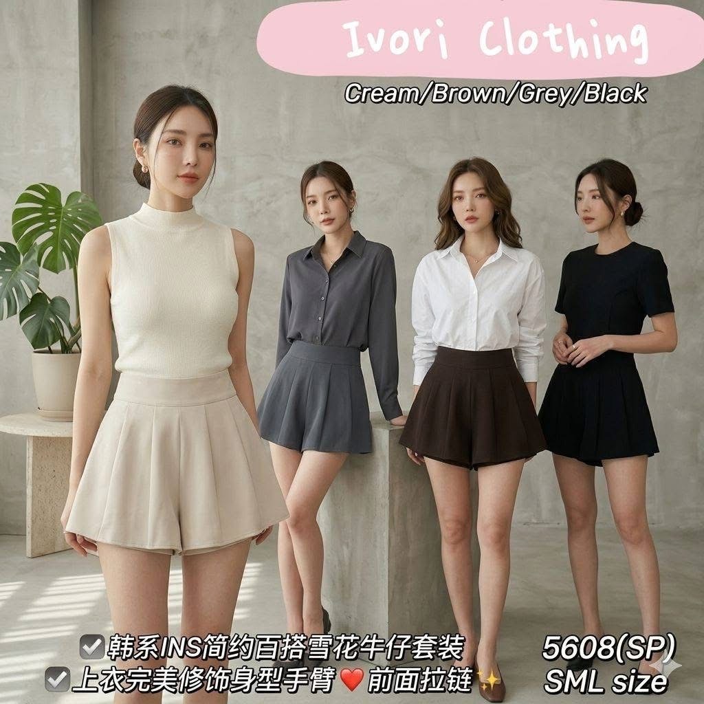 Ivori 版型绝美时尚百搭西装面料高腰裤裙