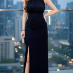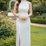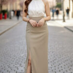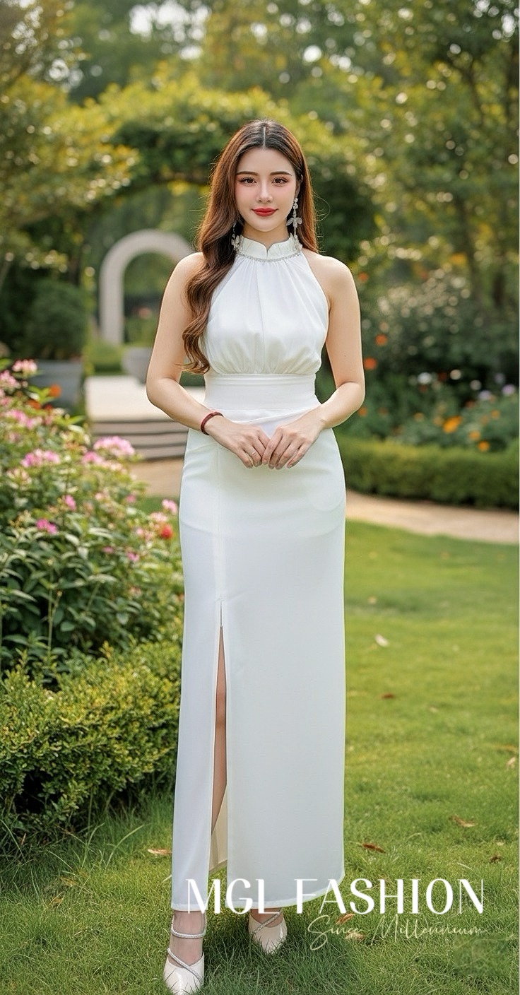 Ivori时尚名媛风露腿西装九分半长裙
