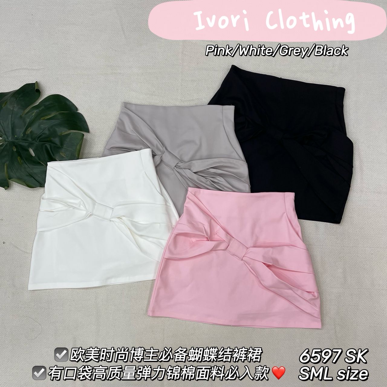 Ivori版型绝美气质蝴蝶结设计高腰裙