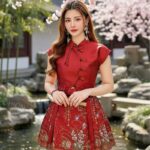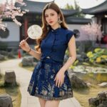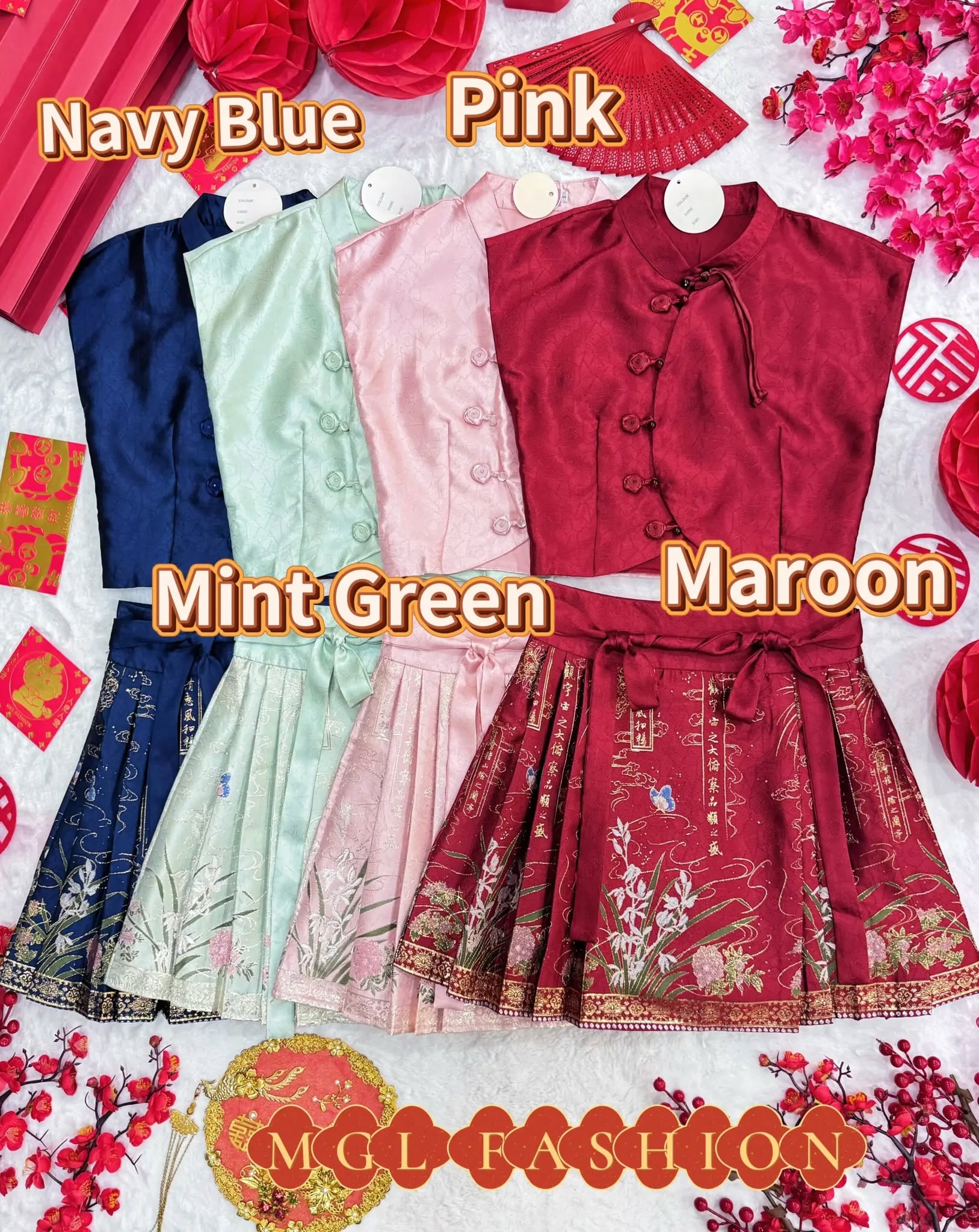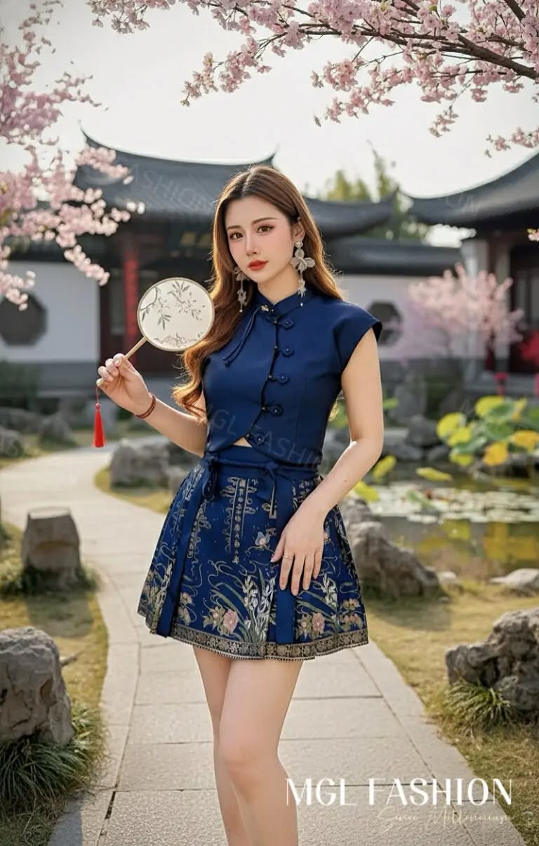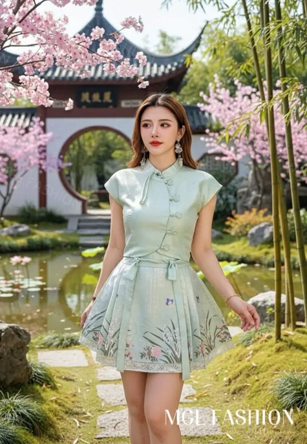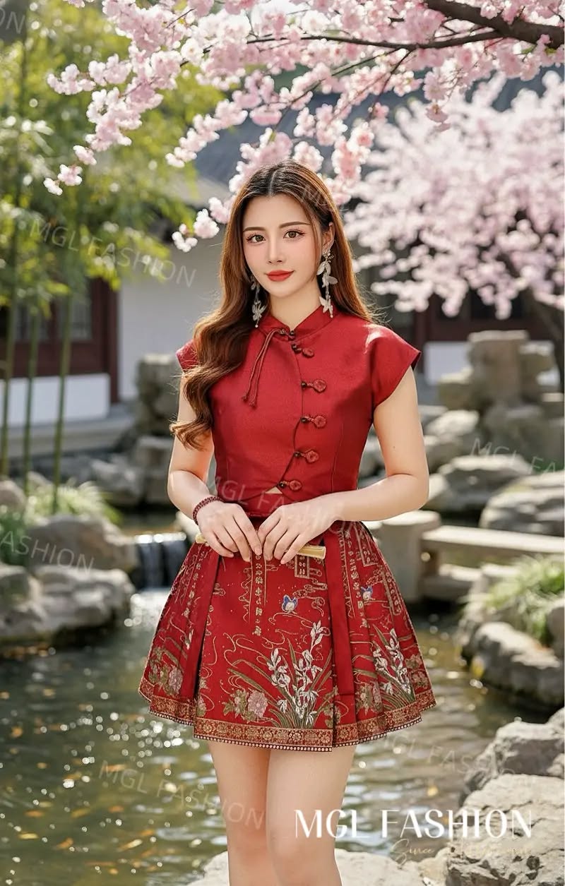 Ivori新年时尚新中式提花旗袍上衣+金丝刺绣马面短裙套装