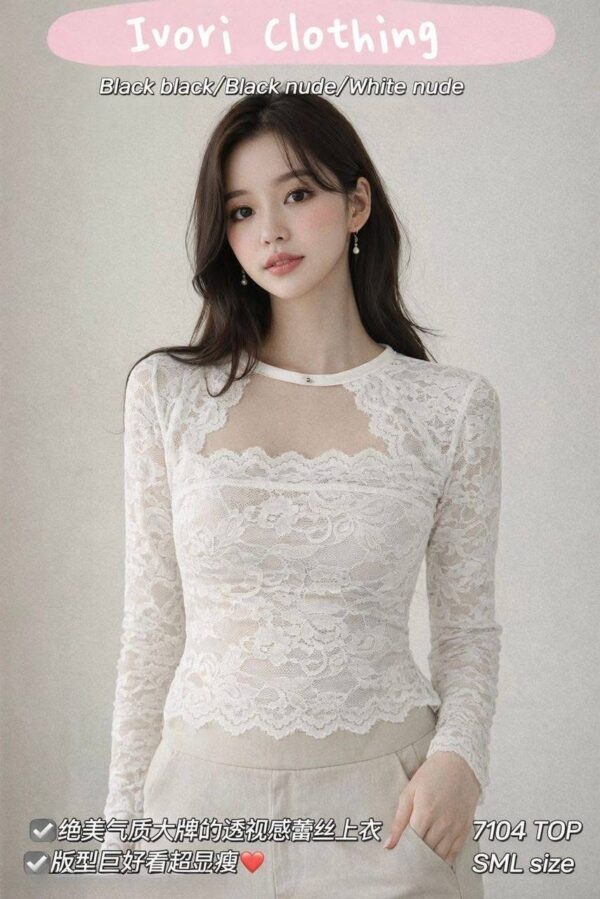 Ivori 时尚气质百搭名媛风蕾丝上衣