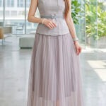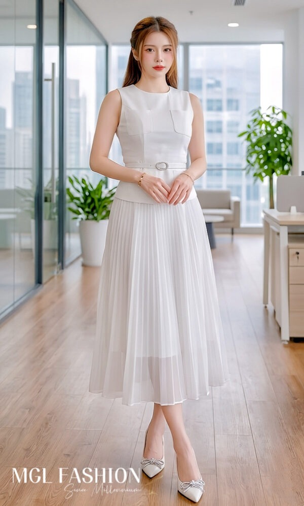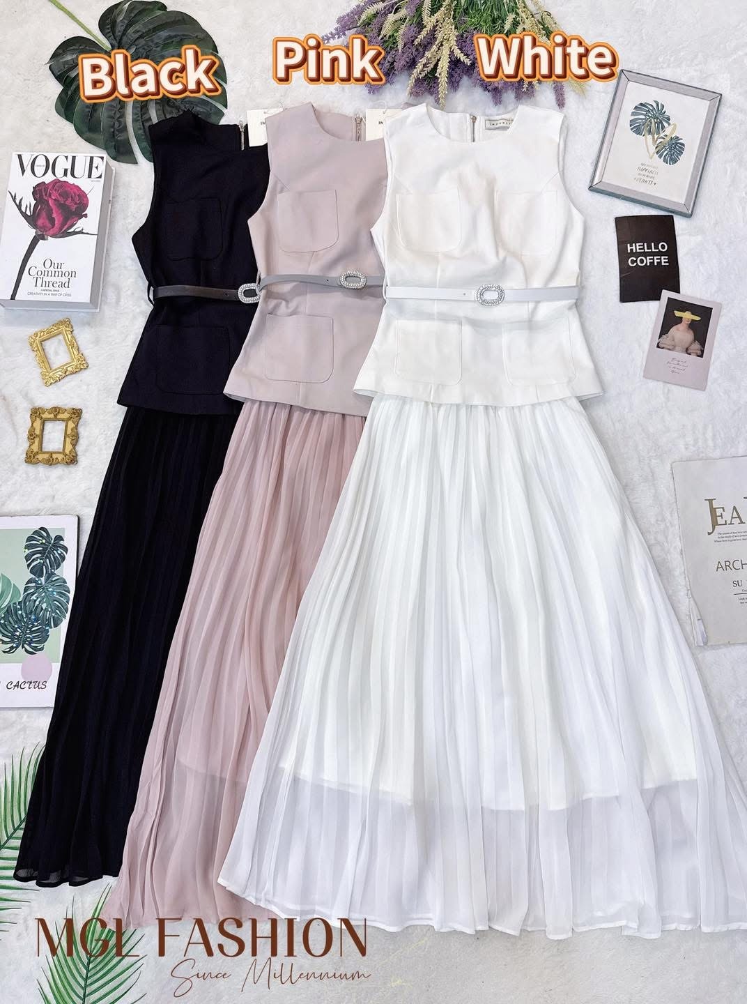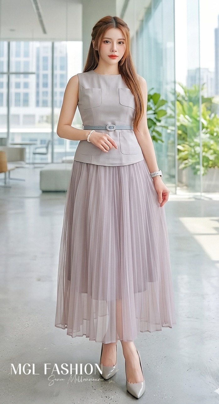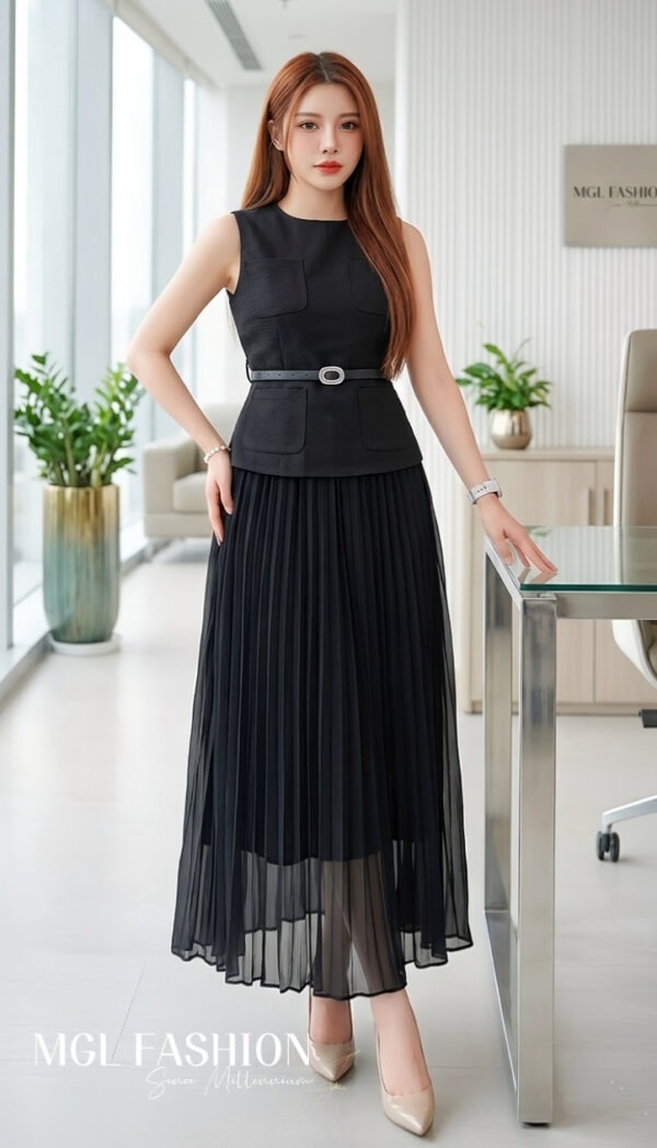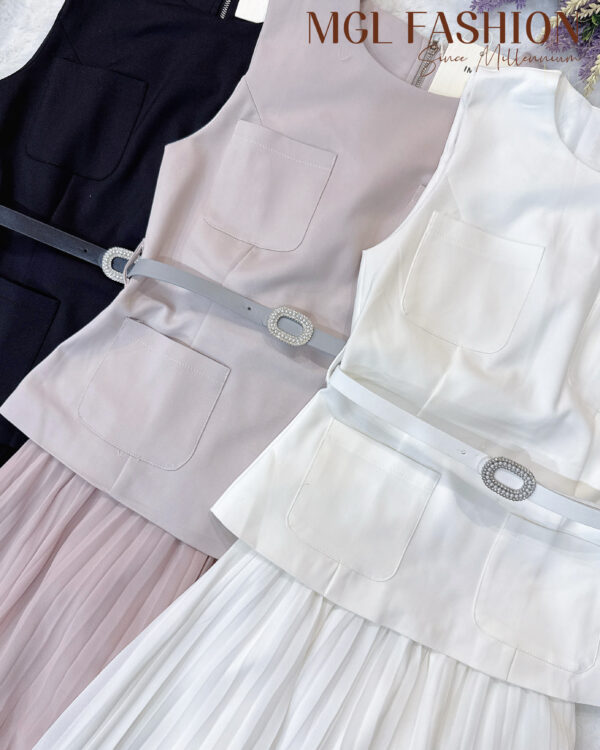 (高质量✔️上衣微弹性锦棉面料✔️裙没弹性雪纺面料✔️上衣有口袋✔️上衣背面拉链设计✔️裙腰间Rubber设计✔️包括腰带)