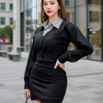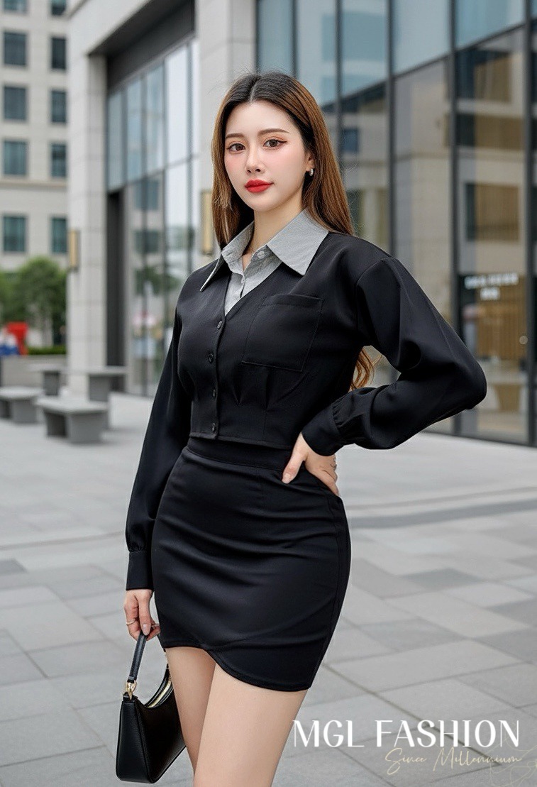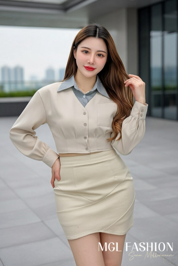 Jamae时尚百搭假两件设计翻领西装时装上衣