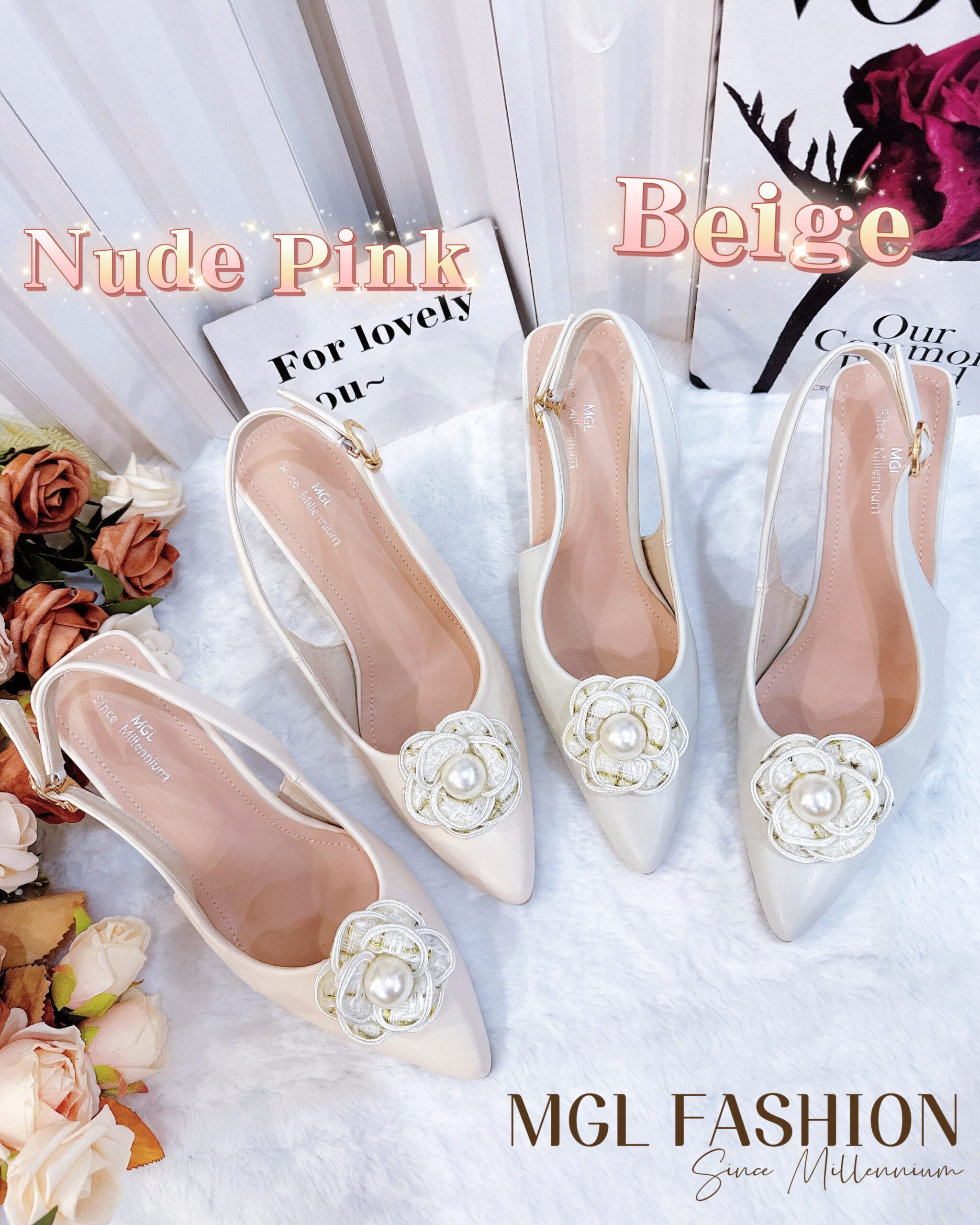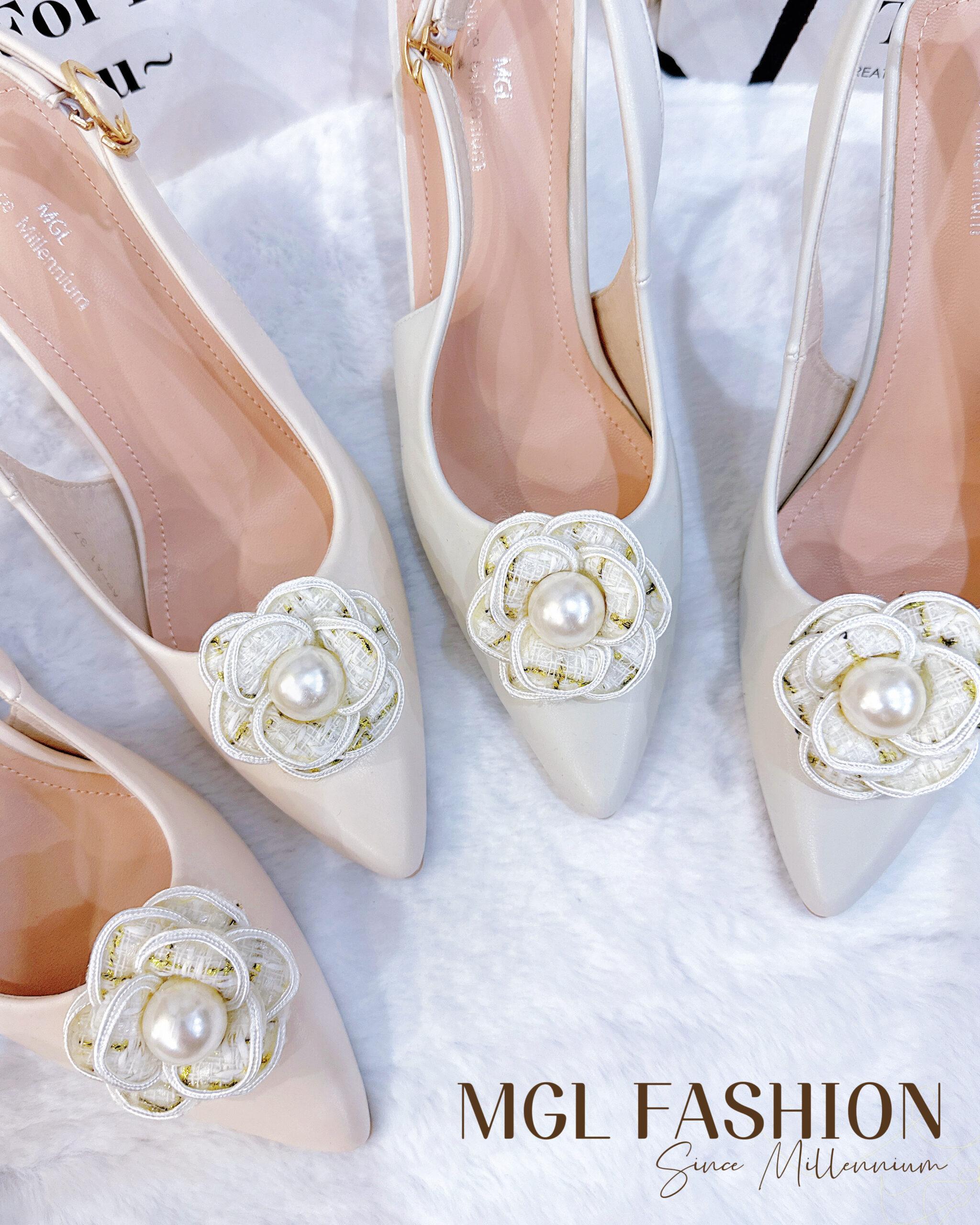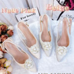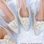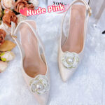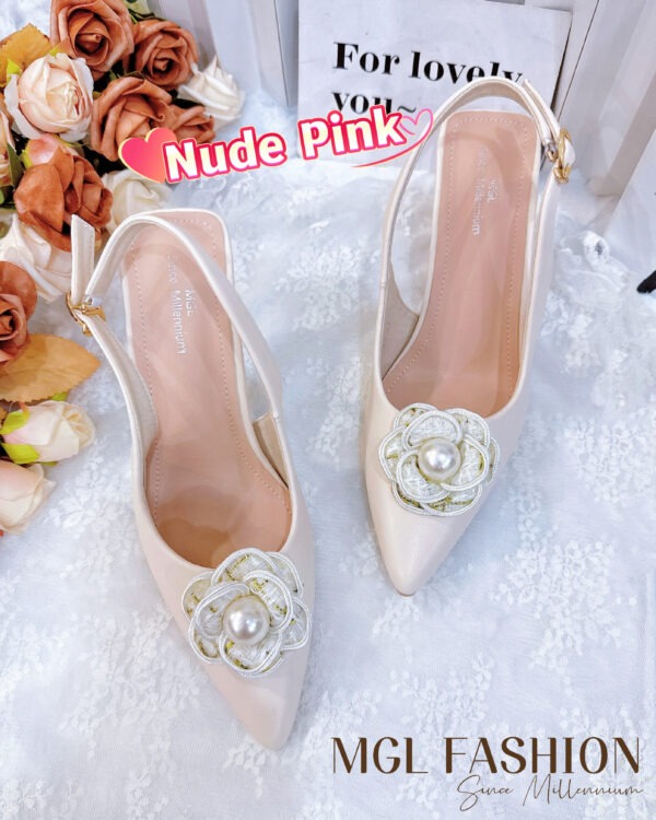 独家百搭气质优雅珍珠山茶花高跟鞋