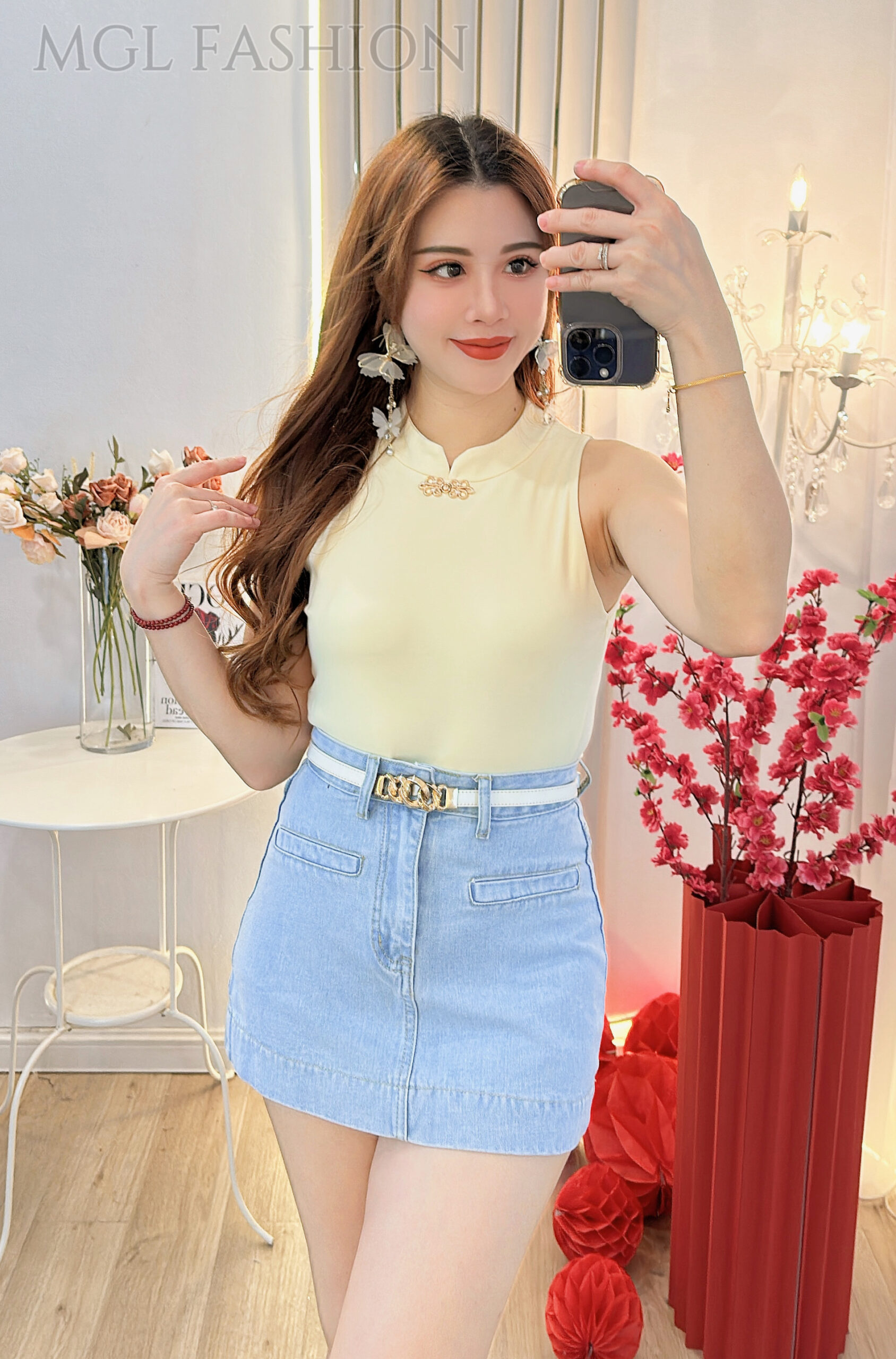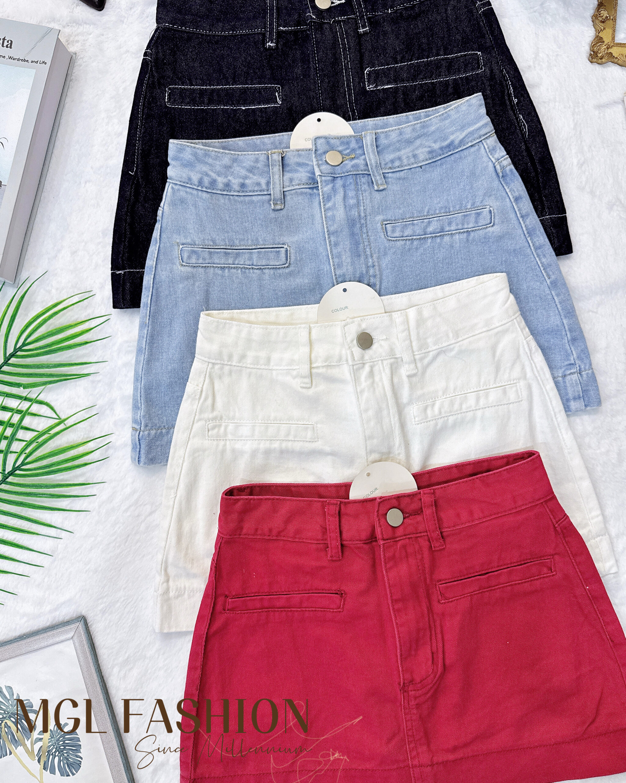 时尚简约百搭超ALine短版版型牛仔高腰短裙