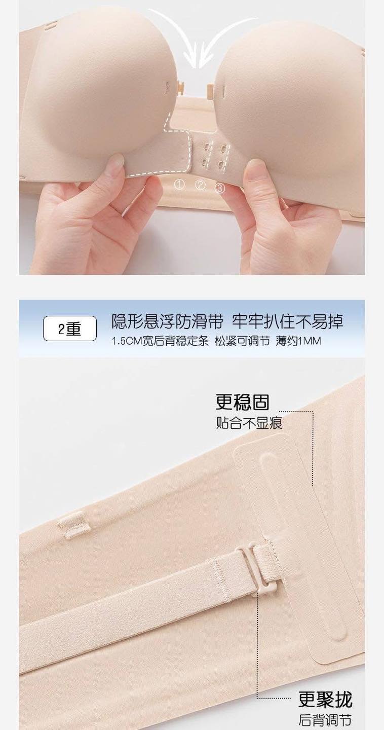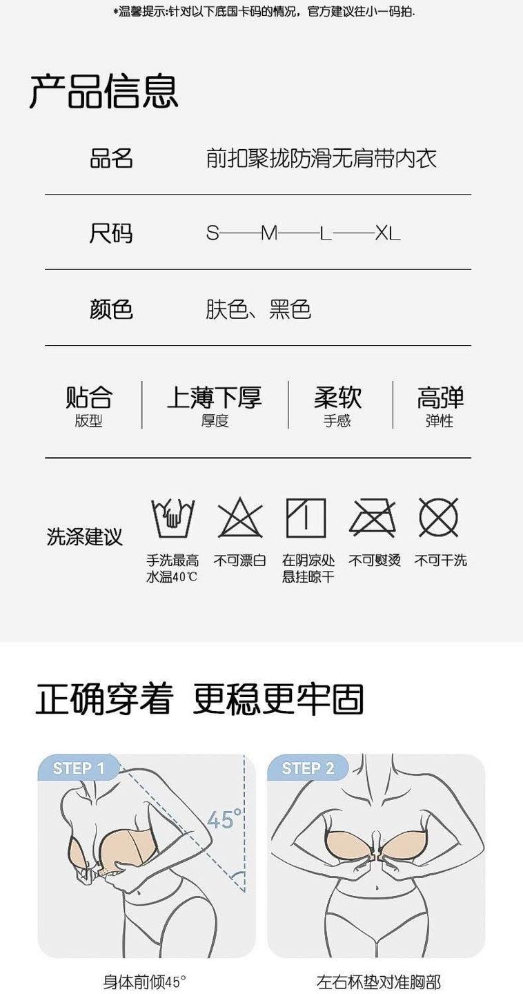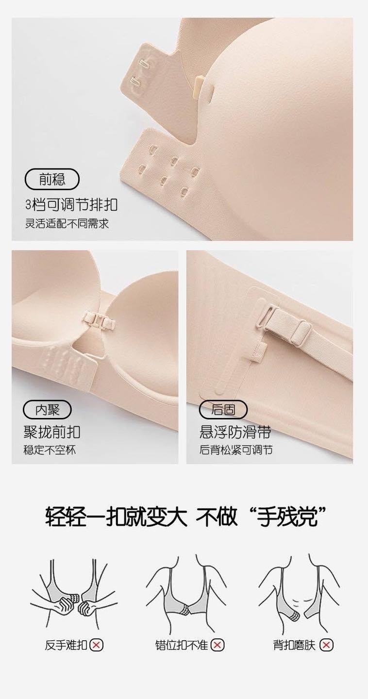 最新前扣式无痕无肩带聚拢防滑PushUp内衣