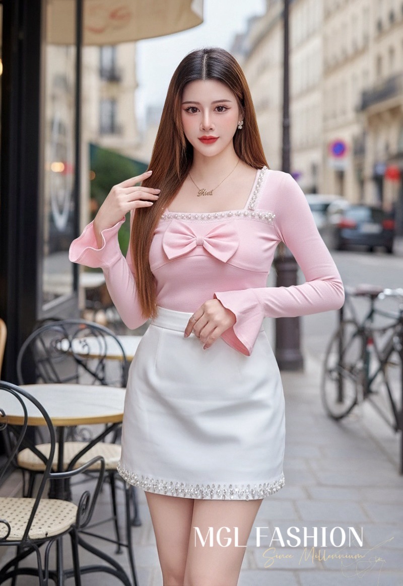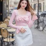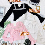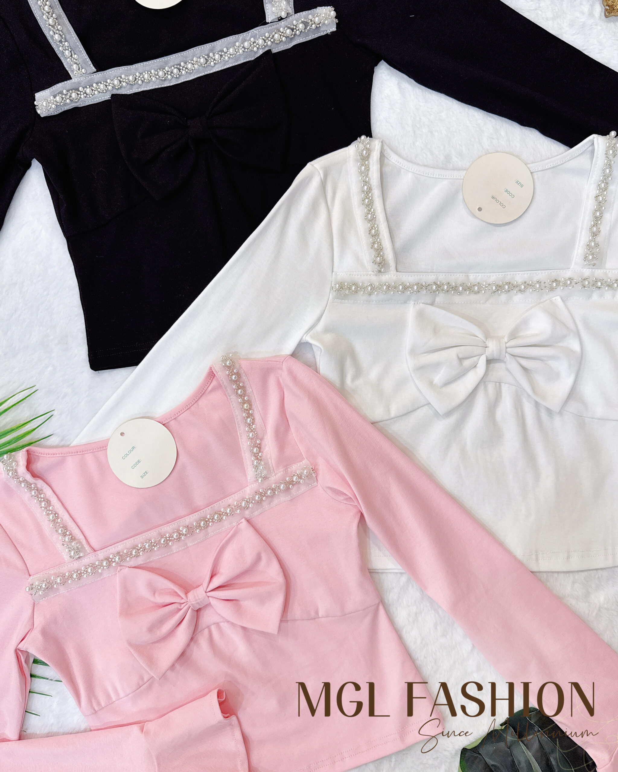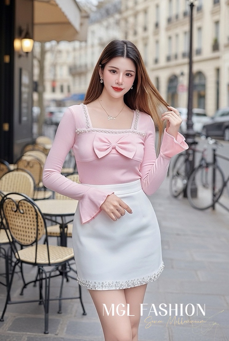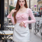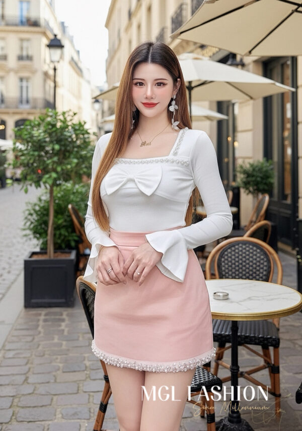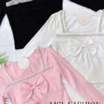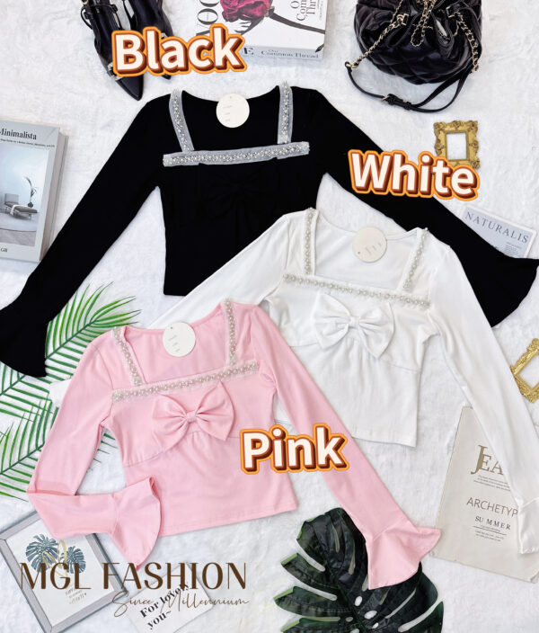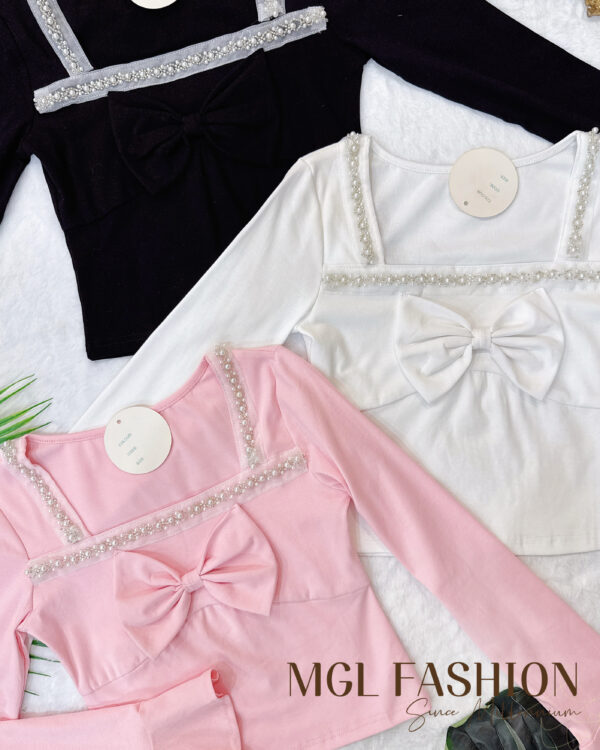 Tiffany 气质唯美法式珍珠蝴蝶结设计棉质上衣