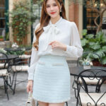 独家定制绝美版型精致气质小香风珍珠高腰裙