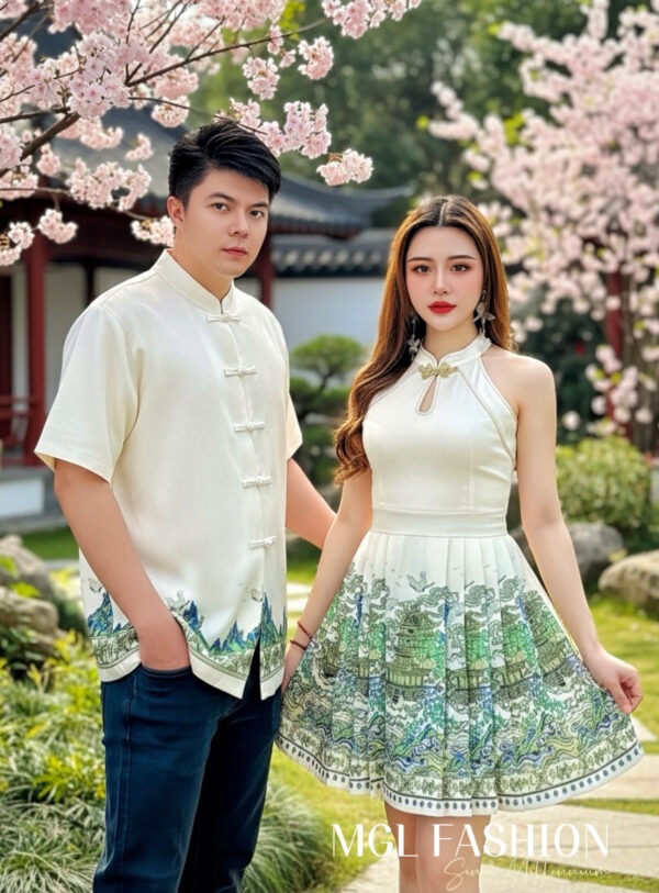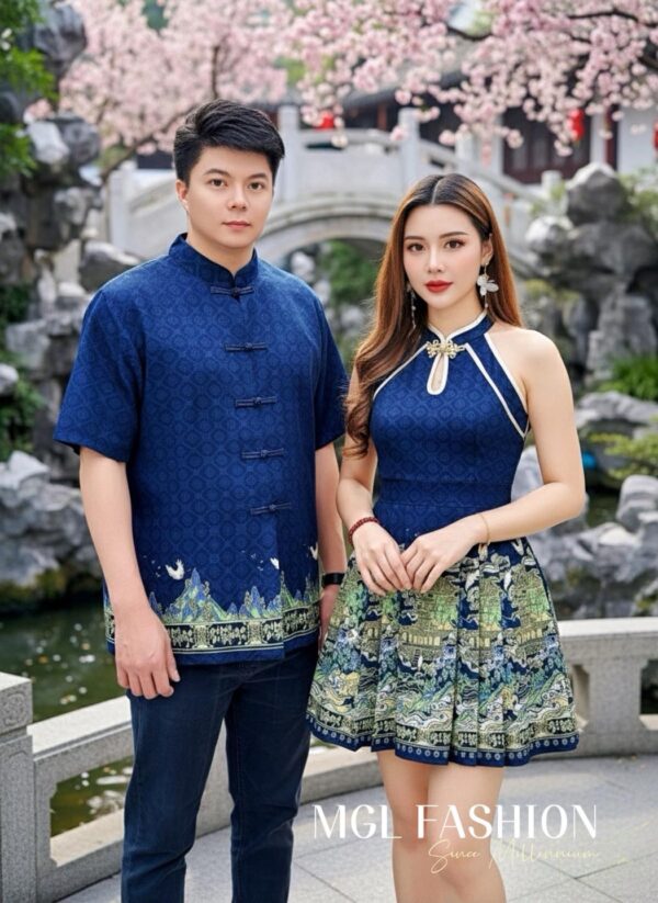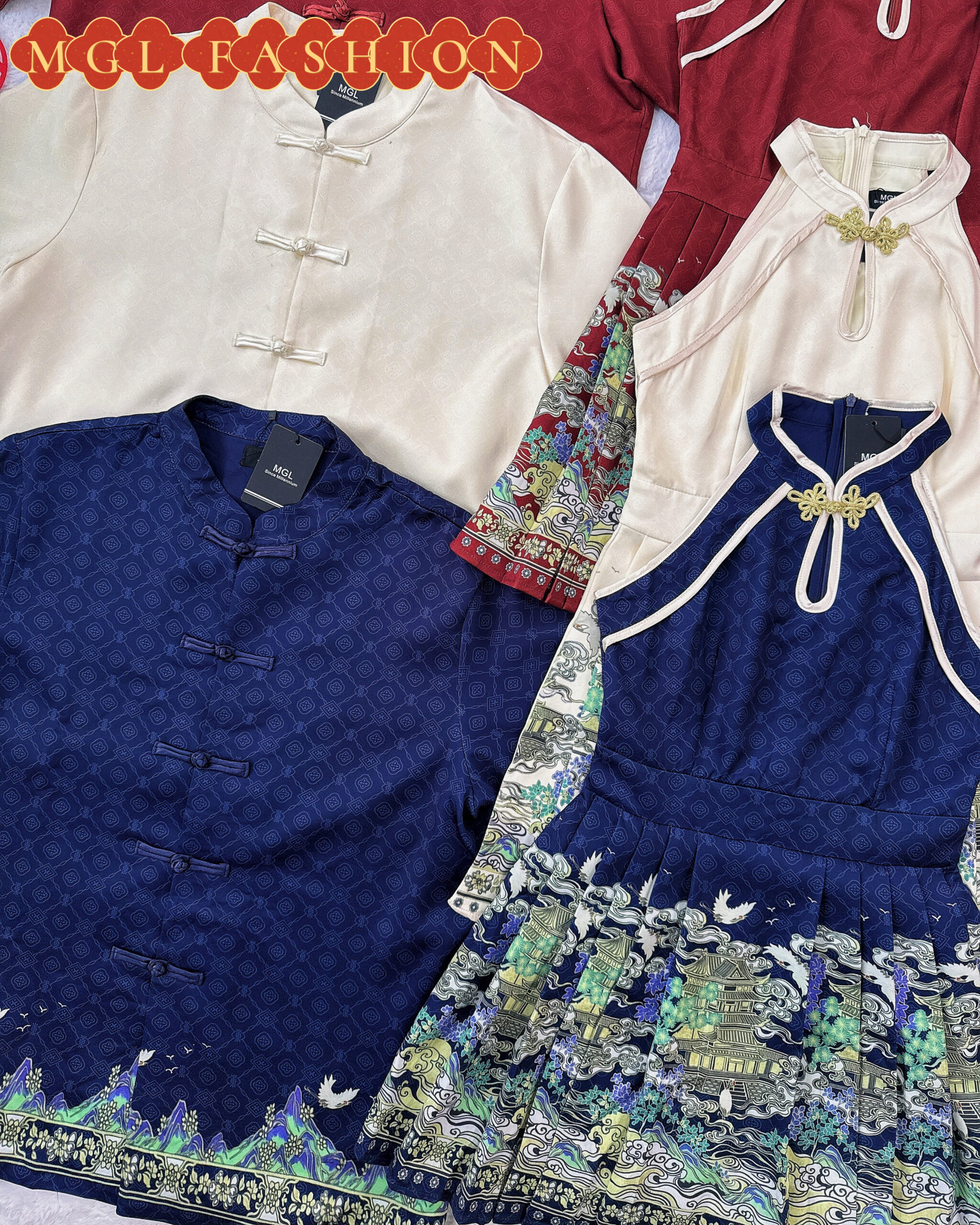 (高质量✔️没弹性免烫超舒适冰滑感西装面料✔️女装Full Lining✔️女装背面拉链设计✔️符带内衬裤子✔️男装前开中国盘扣设计✔️男装超舒Full Lining✔️)