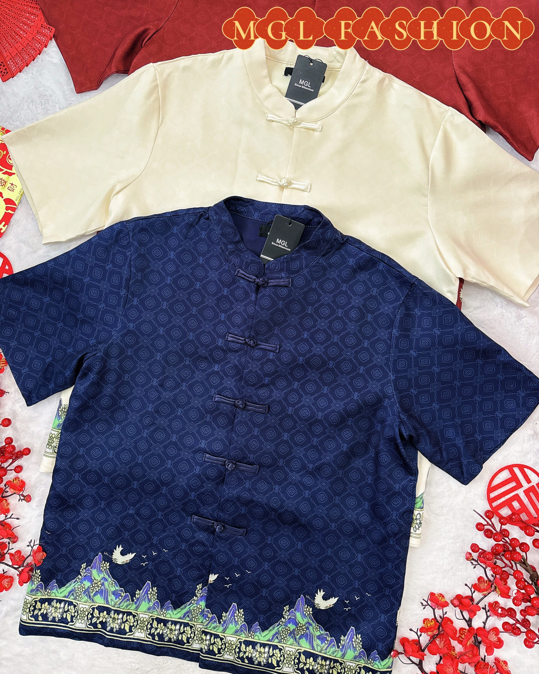 ▪️独家超舒适男装江南山景印花旗袍上衣