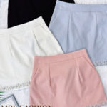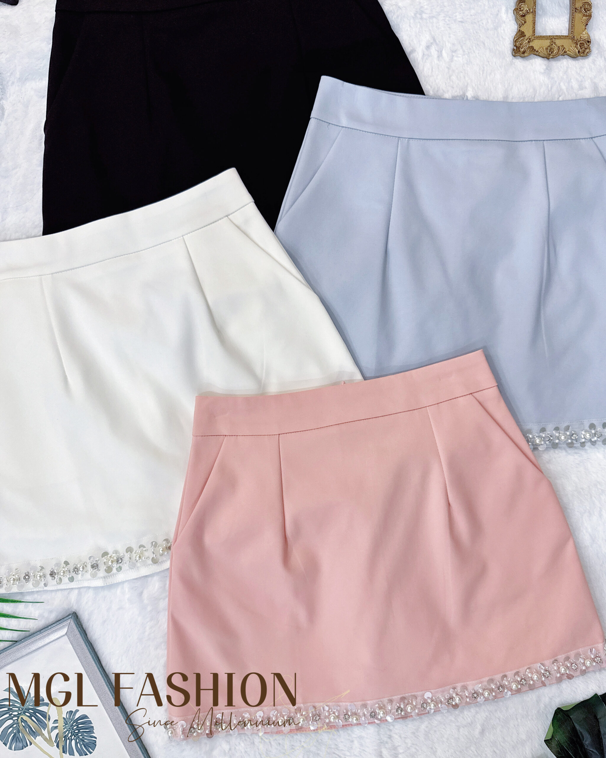 独家气质百搭亮片珍珠设计高腰裤裙